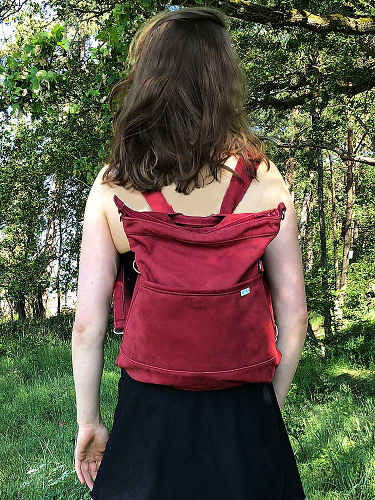 Die Rucksacktaschen sind im gleichen Schnitt und aus den gleichen Materialien gefertigt wie die Umhängetaschen. Zusätzlich zu allen Funktonen der Umhängetaschen besitzen die Rucksacktasche jedoch eine Vorrichtung, mit Hilfe derer man sie zum Rucksack umwandeln kann. So hat man mit einer Tasche viele Optionen.